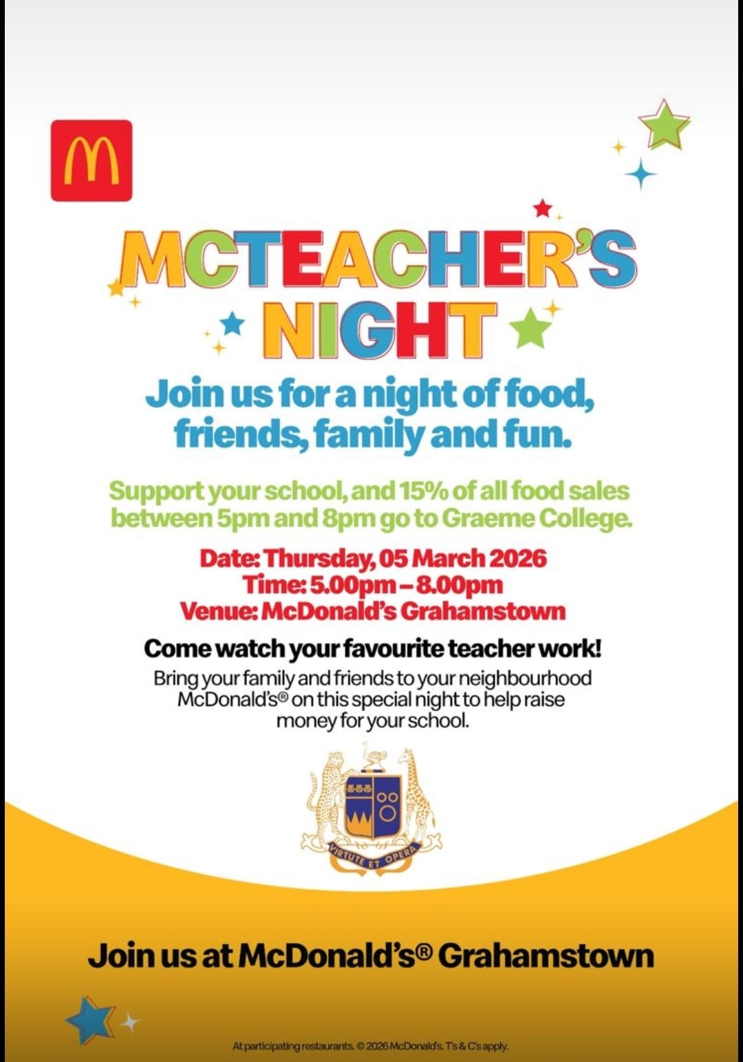 Thursday, 5 March: MacTeacher’s Night at McDonald’s – a wonderful evening of connection and support for the school.