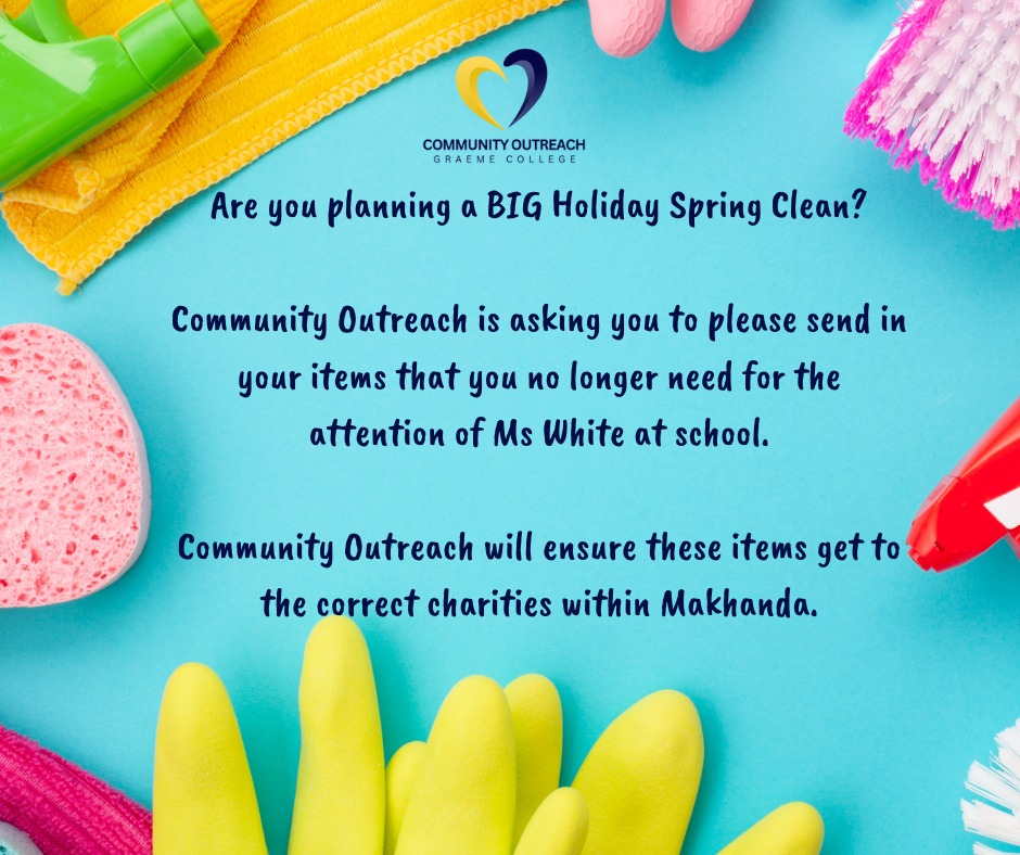 Community Outreach is kindly asking for your support! If you have items you no longer need, please send them in for the attention of Ms. White at school.